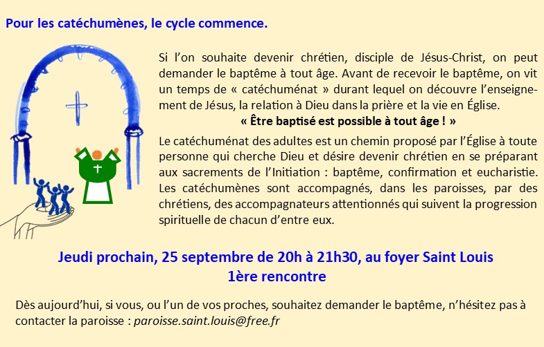 Première rencontre pour les catéchumènes- jeudi 25 septembre à 20h